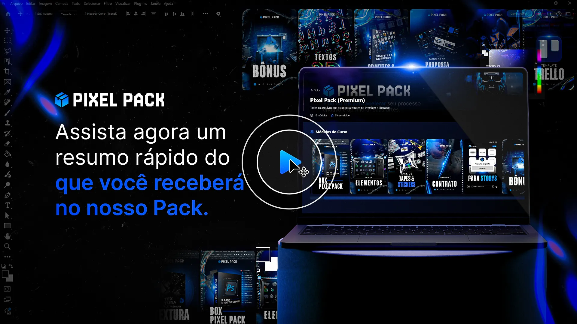 Trabalhar demais e não ter tempo pra nada.O real problema? Não saber criar arte com agilidade. Abrir o software sem ideia, vendo o tempo passar...O Pixel Pack resolve. Designers usam arquivos prontos, ganham tempo e curtem a vida.Acesse arquivos Premium sem assinar vários sites.